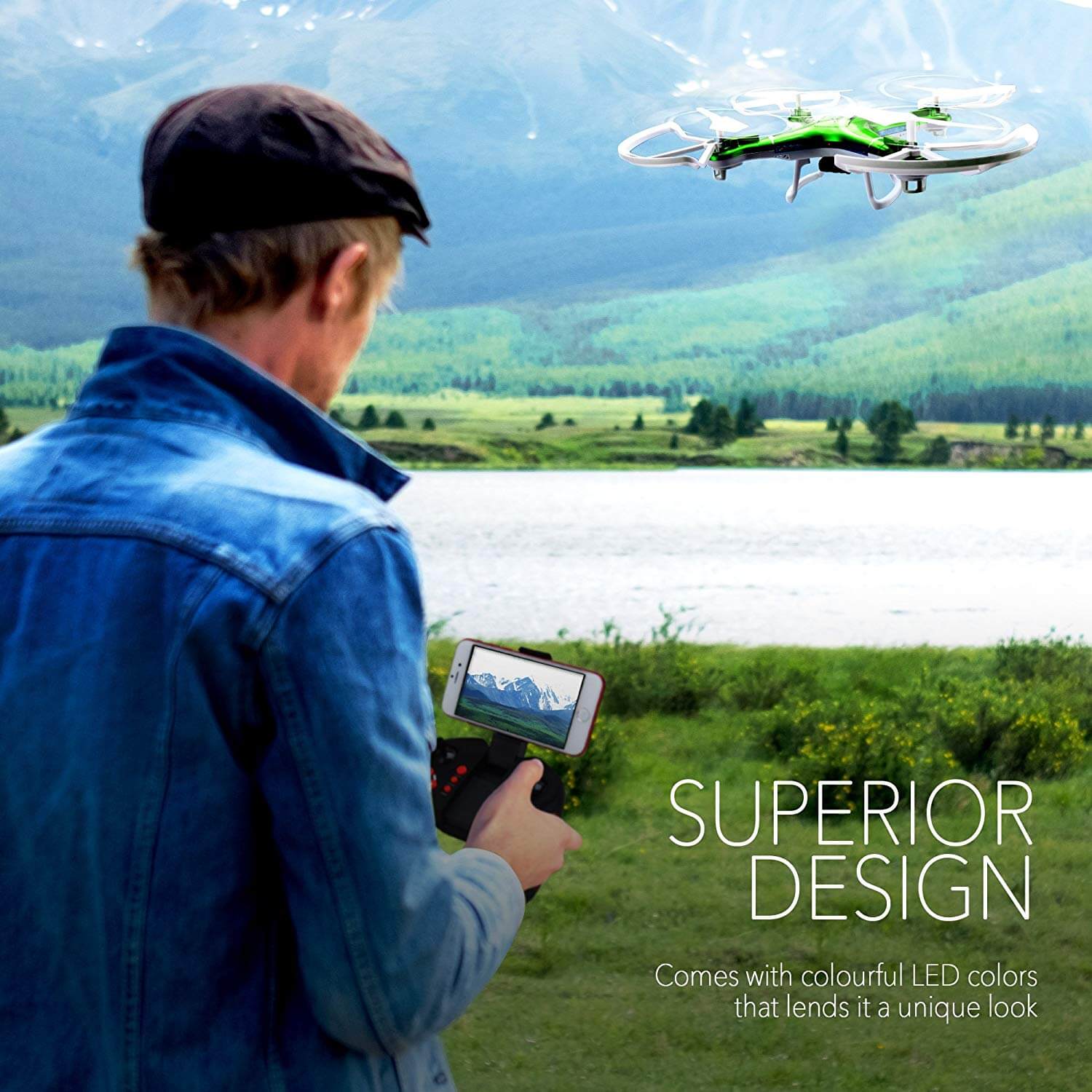 This model has been specifically designed for children and offers headless mode which is easier to handle and flies without faltering. With the performance of 720P HD camera, your child will be able to shoot wonderful moments easily. Moreover, it is equipped with two batteries instead of one so it can fly for up to 18 minutes and lets you take shots without cutting off. There is real-time Wi-Fi transmission that you can even share with family and friends so they can enjoy the flying along.